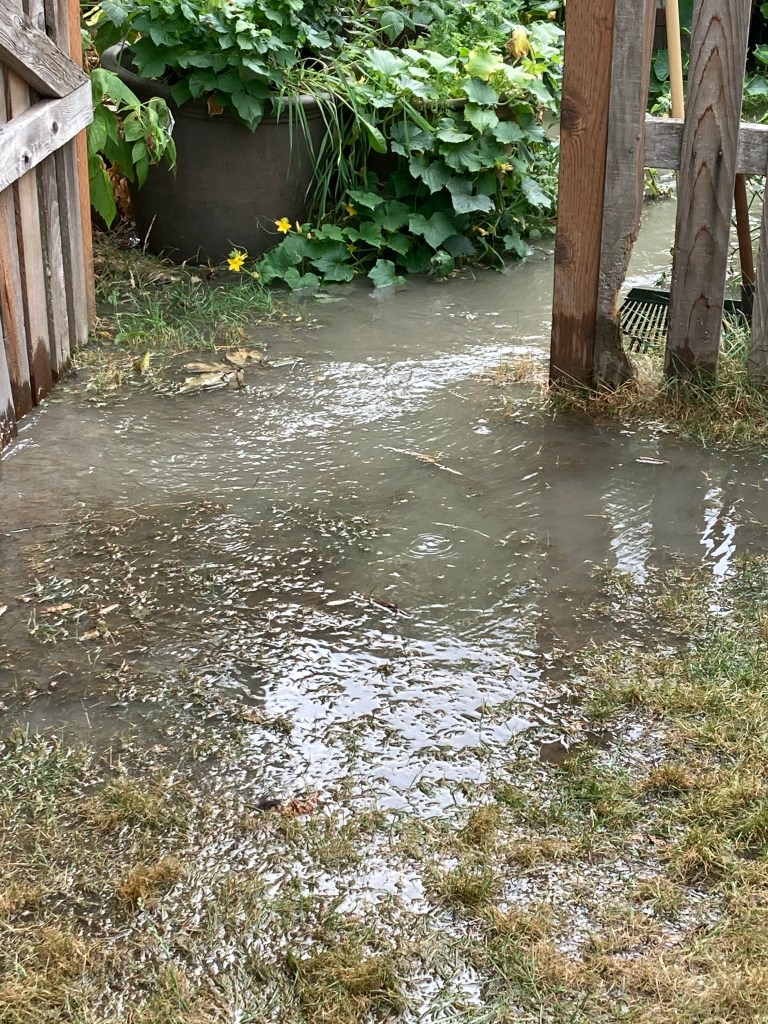 Water main broke between Brad’s house and the neighbor. Crawl space under the house totally filled. Even in the air ducts of the house. What.A.Mess. They lost a few things in the garage and a lot of sleep. Fans were set up in the crawl space for at least a week. And then…