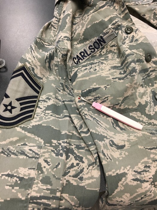 I saw a similar pattern on Pinterest the beginning of the year and started ripping up the uniform in April, when the school was basically shut down and we weren’t feeding but a handful of people. I started in on the shirt first. Those uniforms are very well made! Is it called a French Seam, where one seam is sewn then folded over to create another seam? By the time I got to the pants, I was done, and brought out the rotary cutter and bypassed the seam altogether.