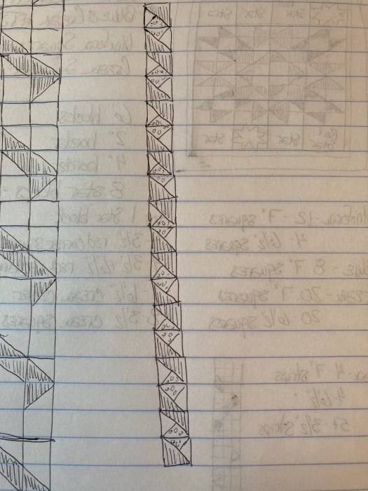 Quilt in a Day had grunge fabric on sale in the summer so ordered all three fabrics from them, but hadn’t yet determined how much I would need so still have more of each for another patriotic quilt another day. I wanted to make it wider than the center lay out so I drew up the ribbon border, again from a picture on Pinterest, and then reversed it for the other side. I think that was the most difficult part. Jeanette Nelson did a fantastic job on the quilting. We discussed it, but really it is all her inspiration and eye for design.