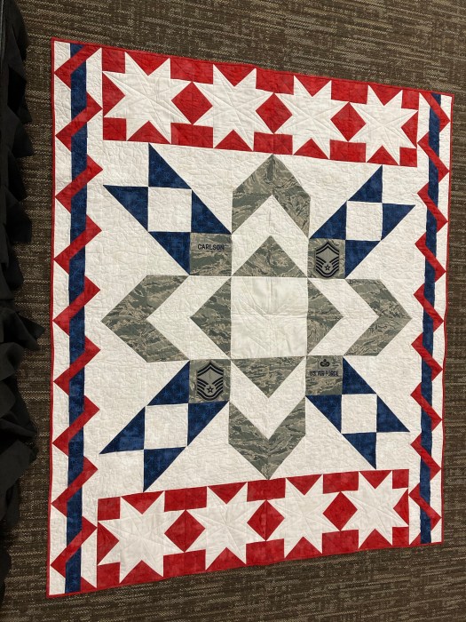 What a crazy year this has been. I am thankful I have a job, but it sure takes a lot of my time! Getting better at managing my free time so got a few Christmas presents made. The most important was the quilt for Denny, using his old uniforms as one of the fabrics!