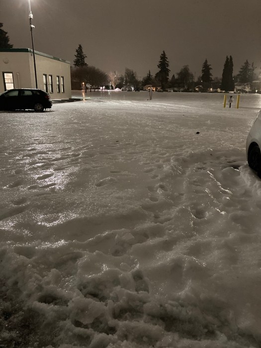 Coming from Minnesota, weather is always discussed. So here is a picture of the winter storm that came through Valentine’s week end. Actually it is the parking/road behind the back door of where I work. Super slick. I had to stay on campus 3 nights. Only packed for one because surely it won’t be that bad…
