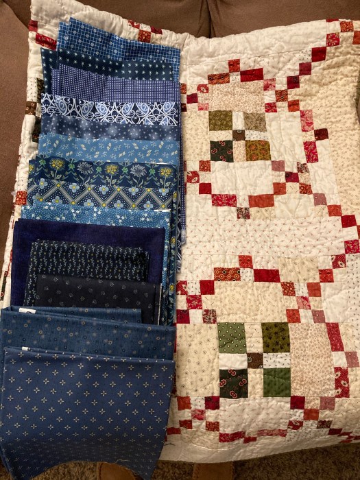 I signed up for Little Blocks 365 at Sentimental Stitches. It is no longer available, but Gay always has different sew-alongs going. This one is 3 inch blocks that are paper pieced. Every Friday she emails directions for a set of blocks. I am not an expert on paper piecing, and with much of my fabric stash unreachable, I think I may make a blue and grey quilt for myself with this project. I think I am in the mood to try and increase my skills. Since it is every Friday for much of the year, this will be another long term project.