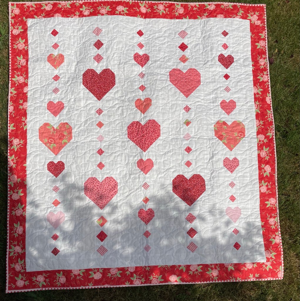 I have the hearts quilt back! Binding is on and will be put in the mail tomorrow!
